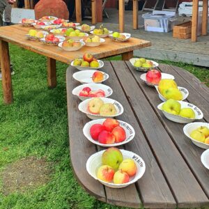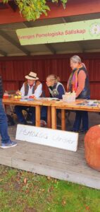 Äppeldagen lördag 27 september blev en fin dag med kalasväder, många besökare och en fantastisk äppelparad presenterad av pomolog Christer Sandberg. Många besökare kom med sina äpplen som sortbestämdes av Christer, frun och dottern. Trots en nedstängd kafébyggnad lyckades Kerstin m fl fixa till en supertrevlig servering.